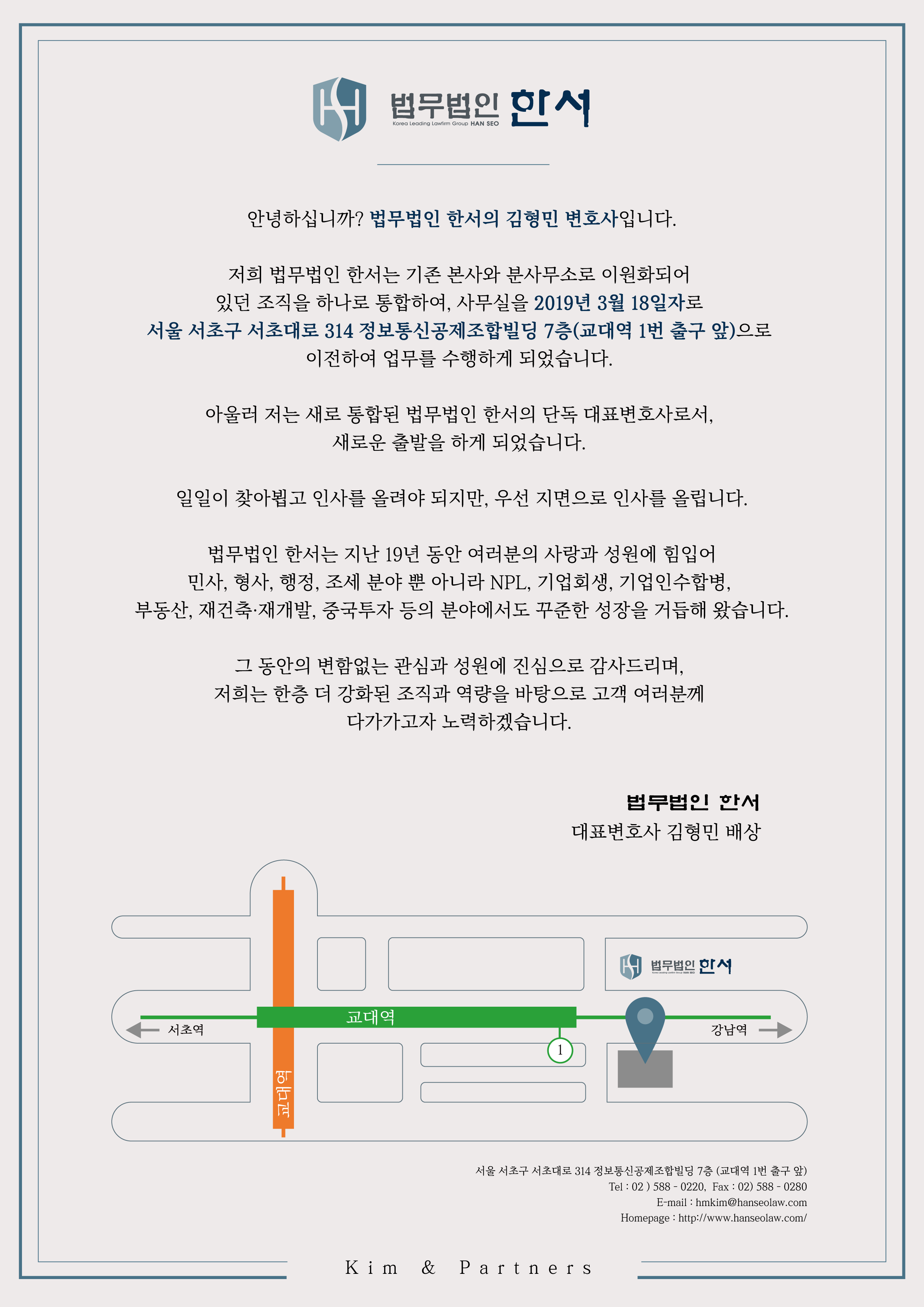 법무법인 한서 홈페이지가 리뉴얼 되었습니다.